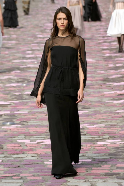 Портрет чутливої парижанки у колекції Haute Couture сезону осінь-зима 2023/24 від модного дому Chanel. Елегантні костюми, романтичні сукні, тандем пастелі, стриманих базових кольорів та жіночних силуетів. Колекція, розроблена наступницею Карла Лагерфельда Віржіні Віар.