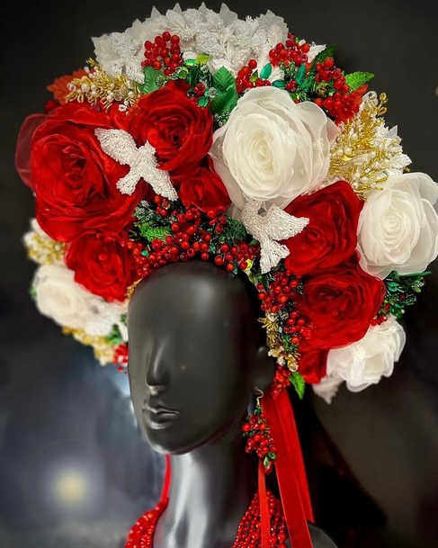Український костюм буде виконаний у вишитому орнаменті, доповнений калиною та горлицями.